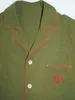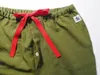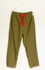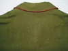 メンズのリネン100%カーキのパジャマ(上・下)パイピング赤 M