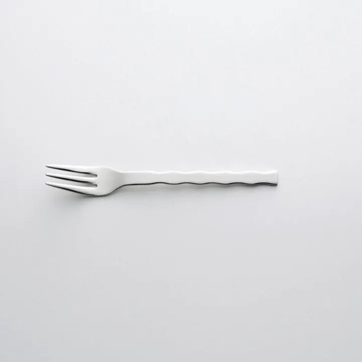 Module Designテーブルウェアのデザインモチーフ〈ウェーブライン〉が特徴のカトラリーです。思わず触れたくなるラインは指にフィットするカタチです。背面にはModule Designの刻印があり、新潟燕市の洗練されたみがき技術がクォリティーの高さをより際立たせています。