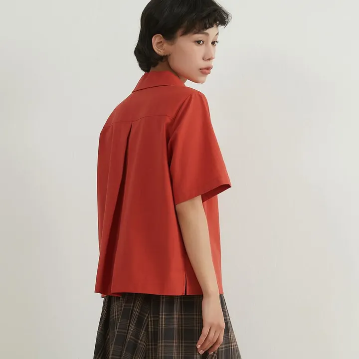 KNNC316リネンコットンキャンプカラー半袖ボタンシャツ RUST/L