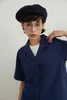 KNNC316リネンコットンキャンプカラー半袖ボタンシャツ NAVY/L