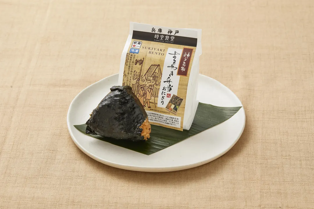 駅弁の老舗「淡路屋」が、名物駅弁「神戸名物すきやき弁当」を 食べやすいおにぎりに仕立てました。甘辛く炊いた牛肉をすきやきご飯に乗せた淡路屋 伝統の味わいを是非お楽しみ下さい。