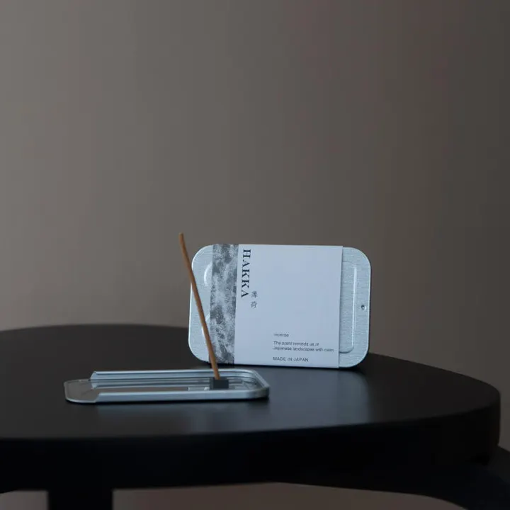 ⽣活の⽊が考える⽇本らしい⾹りや⾵合いを提案するJapan Fragrance Series。 お香の⼀⼤産地、淡路島で丁寧に作り上げられたインセンス(お香)です。 時間の流れを感じさせ、情緒ある空間を演出します。 無着⾊で、素材の⾊のまま仕上げました。 「薄荷」は⻘みのある爽やかなグリーンと⽢いシトラスの⾹り。 ●主な使⽤精油:薄荷 10本缶入の中には、お香とお香立てが入っています。 ケースの裏面にお香立てを置き、お香を立ててお使いください。 香立てはマグネットになっており、缶の蓋に固定できます。 20本箱入の中には、お香のみ入っています。お香立ては別売りです。 10本缶入の詰め替えとしてもおすすめです。 ※画像7枚目の瀬戸焼のインセンスホルダー(香立・香皿のセット)は別売りです。 ※20本の箱は、サトウキビ(非木材資源)からつくられた、バガスパルプ配合の環境対応紙を使用しています。