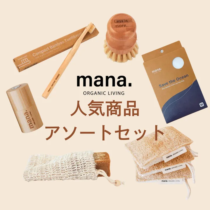 mana. (マナ)は、環境負担のないライフスタイルを求めるお客様を応援するため、ゼロ・ウェイストを掲げて沖縄で生まれたサスティナブルブランド。