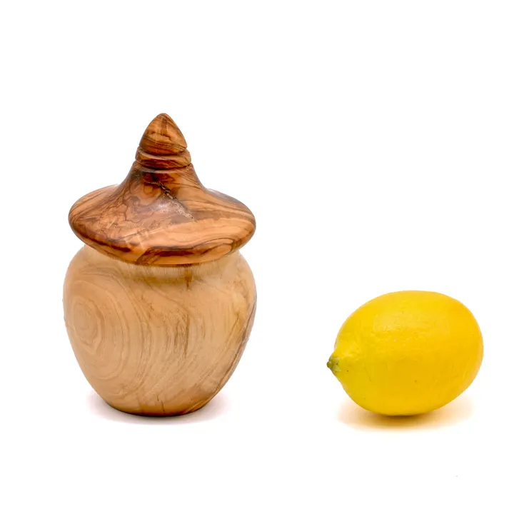 【基本サイズ:直径8cm x 高さ13cm】チュニジアオリーブウッド BOS6 シュガー・ハニーポット BOS6 ①