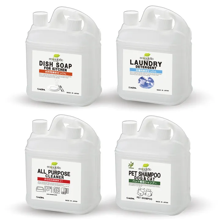 エコシャボン詰替用タイプ別を混載で、1ケース4本になるようにご注文できます。 【ご注文単位】1本 (4本/1ケース) 商品に関する詳細は、各商品ページをご参考ください。 頑固な油汚れから肌着まで超微粒子で汚れを落とす、植物由来原料で作った洗濯用液体せっけん。蛍光漂白剤不使用、すすぎが簡単で柔軟効果がありでふんわり仕上がります。 ●洗浄成分100%が植物原料(ヤシ油・松由来.他)で造った植物洗剤です。 ●泡立ちが豊かで泡切れも良く、コロイド微粒子で汚れを落とします。 ●各種分析試験を行っていますので、安全性を重視し安心してお使いいただけます。 ●石油系原料は使用していませんので環境にも配慮しています。 ●内容量 4000g ●品名 洗濯用複合せっけん●用途 綿、麻、合成繊維用●液性 弱アルカリ性 ●成分 界面活性剤(15%)純石けん分(11%脂肪酸カリウム) 純石けん分以外の界面活性剤 (4%脂肪酸アルカノールアミド)安定化剤、香料 JANコード 4944896704115