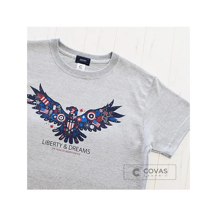 " アメリカンイーグル "  アメリカの象徴イーグルがデザインされたTシャツ。 アメリカの強さや勇敢さを体現している様はまさにTHE USA!。 夢と自由を求めて海を渡るその日のために・・・♪ 綿90% ポリエステル10% 5.6オンス・天竺ヘビーウエイト生地使用 プリント方法:ダイレクトインクジェットプリント 衿リブは洗濯を繰り返しても伸びないしっかりした作りになっています。 【XS】 身丈58 身幅43 肩幅38 袖丈16cm  女性小さめ 【S】 身丈64 身幅48 肩幅42 袖丈18cm  女性標準〜大きめ、男性小さめ 【M】 身丈68 身幅52 肩幅46 袖丈20cm  男性標準 【L】 身丈72 身幅55 肩幅50 袖丈22cm  男性大きめ 【XL】 身丈76 身幅58 肩幅53 袖丈24cm  男性特大 ※サイズ表記はメンズサイズの表記になっています。 商品キーワード: アメリカ イーグル 鷲 独立記念日 USA 星条旗 イーグルTシャツ アメリカTシャツ  Tシャツ Tシャツ ティーシャツ メンズ レディース メンズTシャツ レディースTシャツ 大人 ユニセックス 男女兼用 男性 女性 トップス カットソー 半袖カットソー 半袖Tシャツ 半袖T 半袖 カジュアル プレゼント 父の日 クルーネック デザイン デザインTシャツ イラスト イラストTシャツ グラフィック グラフィックTシャツ プリント プリントTシャツ 綿 コットン ヘビーウエイト 雑貨店 厚手 人気 おすすめ 数量限定 XS SS LL XL Tシャツブランド コバス コバスグラフィック COVAS GRAPHIC COVASGRAPHIC