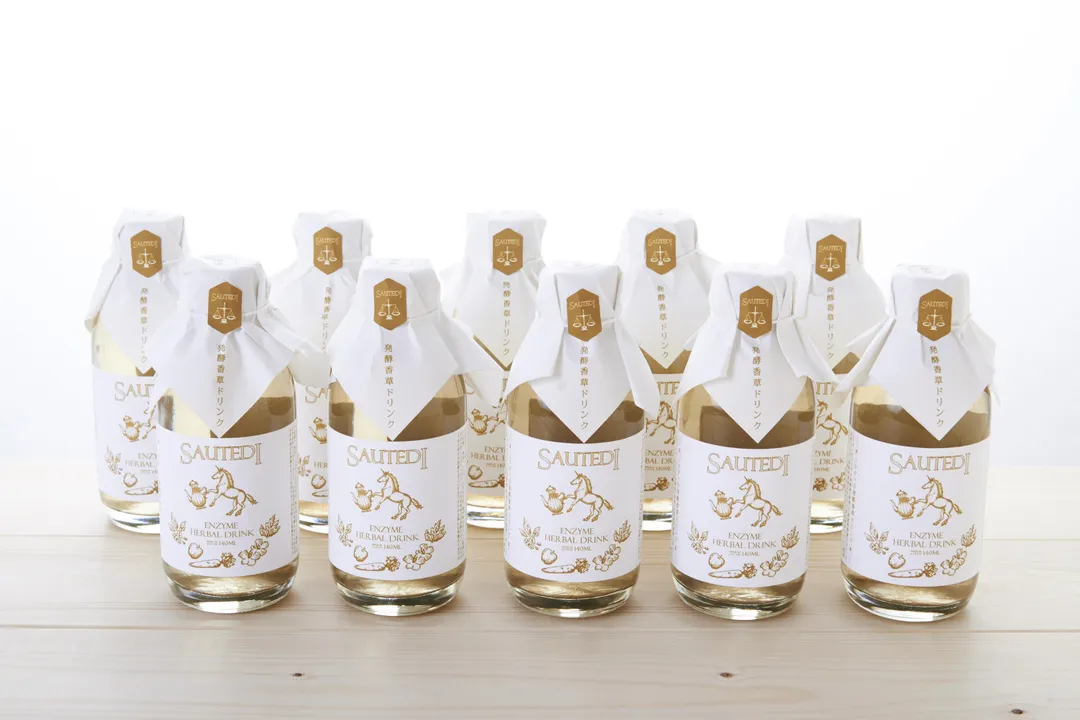 発酵香草ドリンク10本 忙しい方にとって水などで薄めずに即席で飲めるよう開発したストレートタイプの酵素ドリンク。 国産無農薬9種類の野菜果物を漬け込んだSAUTEDIオリジナル発酵液(原液)に 国産無農薬7種類の日本ハーブを漬け込み、国産無農薬日本ハーブ抽出液をプラス。 酵素と国産日本ハーブの調和がとれた香りが引き立つオリジナル酵素ドリンク。 ■発酵液産地(有機または無農薬)・製法 ・福島県と周辺県(東北全県とその周辺県)以外の有機または無農薬野菜・果物 ・『重ね仕込み』 ・伝統製法『自然発酵』 ■日本ハーブ液産地(すべて無農薬) ・くろもじ:島根県 ・月桃:沖縄県 ・スギナ:宮崎県 ・どくだみ:岡山県 ・とうき:和歌山県 ・山人参:宮崎県 ・よもぎ:宮崎県 ■はちみつ酢 ※HP調整のため天然の素材で調整 ・国産はちみつを使用したはちみつ ・代々続く酢酸菌によって酢酸発酵、『静置発酵法』によってゆっくり時間かけてお酢を製造 ■特長 ・薄めずにそのまま飲める発酵香草ドリンク ・女性特有のお疲れに働きかける ・SAUTEDIオリジナル発酵液(原液)に国産無農薬日本ハーブを漬け込み、 国産無農薬日本ハーブ抽出液をプラス。 ・酵素と国産日本ハーブの調和で香りが引き立つドリンクに。 ・1番の特徴はオリジナル発酵液にハーブ抽出液をプラスしていますので、水などで薄めずにストレートタイプですので即席で購入後そのまま飲めます。 ・酵素の理論に基づくよう、SAUTEDIオリジナル発酵液に 国産無農薬野菜・国産無農薬果物を使用。 ・発酵液の漬け込みハーブもハーブ抽出液も国産無農薬日本ハーブを使用。 ・無添加 ■内容量 140mL(1本)