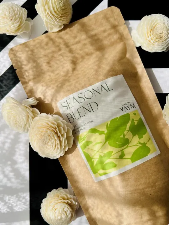 【SEASONAL BLEND】 爽やかなミントとレモン系のハーブのブレンドティーです。ゴールドに輝くお茶です。 ホットでも美味しく召し上がれますが、水出しがおすすめです。 内容量:ティーバッグ3袋入り(1袋でポット1杯分:約400ml) <ブレンドハーブ> スペアミント、レモンバーベナ、レモングラス、ジャスミンフラワー、エルダーフラワー ※レモンそのものは入っておりませんのでアレルギーの方も安心してお楽しみいただけます。 爽やかなミントとレモンの香りのティーです。酸味や辛味などはなく、スッキリとした飲みやすいマイルドなティーです。スペアミントという辛味のないハーブを使用しておりますので、お子様もお楽しみいただけます。(対象年齢4歳以上。15歳以下の方が飲む場合は薄めに抽出してください。) HOT、ICEどちらでもお楽しみいただけ、水出し可。 (水出しの場合は最低2時間以上抽出してください) チャック付きの袋でお届けいたしますので、開封後も密閉でき、そのまま保管が可能です。 YAYMのハーブティーは香料、保存料、着色料は一切使用しておりません。ハーブそのものの優しい香りや味をお楽しみください。 ※授乳中・服薬中の方は医師へご相談ください。 ※妊娠中の方はご遠慮ください。