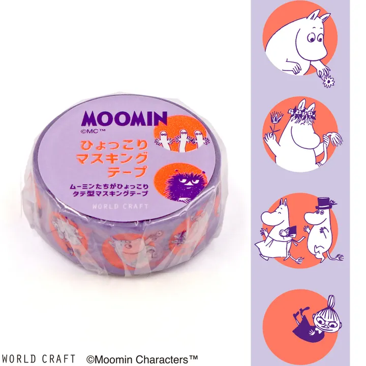 【ムーミン マスキングテープ まる パープル】 ◎ムーミンたちがひょっこり!珍しいタテ型のマスキングテープです。 ◎色鮮やかなスペシャルカラー仕様で、  ひょっこり覗くムーミンたちが手帳やノートをにぎやかにしてくれます♪   --------------------------------------------------------------------------------------- ◇◇ 横からひょこり日常を覗く 『ムーミンひょっこり stationeries』 ◇◇ ムーミンの世界に広がる木や花々からひょっこり飛び出すムーミンとなかまたち♪ そんなムーミンたちが私たちの日常を彩るステーショナリーシリーズが登場!! ◇◇ ムーミン商品ラインナップ ◇◇ ☆新商品☆ ■フィルムインデックスシール第2弾(5柄) < ムーミン / リトルミイ / スナフキン / ニョロニョロ / スティンキー > ☆新商品☆ ■フェイスシリーズ フレークシール(4柄) < ANGRY / HAPPY / ENNUI / THINKING > ☆新商品☆ ■フェイスシリーズ シートシール(4柄) < ANGRY / HAPPY / ENNUI / THINKING > ■マスキングテープ(8柄) < ボーダーピンク / ボーダーグリーン / ボーダーブルー / まるパープル /   森 グレー / ケーキ グリーン / フラワーブルー / フラワーオレンジ > ■フィルムマスキングテープ(8柄) < Woods / Garden / Grass / Going  /   Flower ライトグリーン / Flower ブルー  / Flower クリア / Flower パープル > ■キラキラフレークシール第1弾(8柄) <ムーミン / リトルミイ / スナフキン / Sのおじょうさん /   ミムラねえさん / トゥーティッキ / ニョロニョロ / スティンキー> ■キラキラフレークシール第2弾(8柄) < ムーミンとSのおじょうさん / リトルミイときょうだい / ムーミンとスナフキン /   ムーミンPとムーミンママ / ともだち / ニョロニョロ2 / スティンキーとスニフ /   Kユールとスクルッタ> ■養生テープ(4柄) < 森 / 草原 / 原野 / 雲> ■フレークシール(8柄) < 森とムーミンA / 森とムーミンB / ムーミンパーティーA / ムーミンパーティーB /   なかまたちA / なかまたちB / ミイがいっぱい / シルエット >        ■フィルムインデックスシール第1弾(2柄) < しかく / まる > ■ペーパーインデックスシール(2柄) < おおきい / ちいさい > ■リングノート(2柄) < 森 / ボーダ > ■メモパッドA7(2柄) < 木グリーン / いたずらピンク > ■箱シリーズ  ・A4サイズ(ぶどう畑 / はな )  ・カードサイズ(はなつみ / さんぽ / さがしもの / 釣り )  ・プチサイズ (ファミリー / リトルミイとミムラねえさん /            スナフキンとニョロニョロ / ムーミンとSのおじょうさん )  ・ポストカードサイズ(森 / 読書 / さかだち / みずうみ ) ■什器セット などを出品しておりますので、そちらのページもご覧ください♪