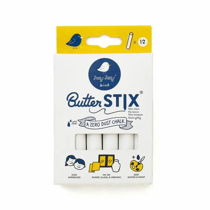 チョーク(バタースティック)ホワイト12本セットです。チョーク(バタースティック)は湿らせた布で簡単に拭き取れます。