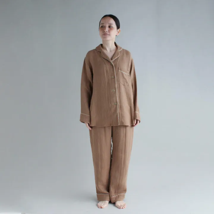 【今治産】敏感肌にも優しくなじむオーガニックコットン今治タオルガーゼパジャマ キャメル