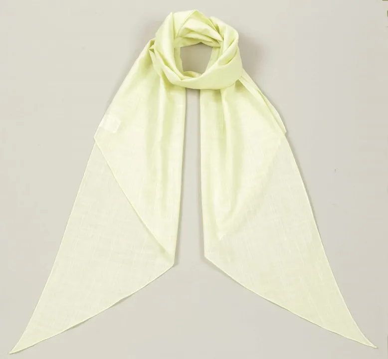 ボタニカル・ダイ ストール「菜の花」 BOTANICAL=植物 DYE=染料植物は、それぞれ独自の自然の色素を持っています。ボタニカルとは植物の花・茎・葉や果実または鉱石など、自然な物から色素を抽出して繊維に吸着させる技術です。花びら・葉・枝・実などの違う部位を水にしたり、お湯で煮出したり、すり潰したり、pHを変えたりすることにより、植物の持つ様々な色を表現しています。これまでの草木染とは異なる新しい技術で色素を固定させるため、美しい発色と堅牢度の高さが特徴です。染め終わった後に排出される水が透明に近く、環境負荷の少ない染色方法でもあります。 菜の花の花びらで染めた、ロングサイズのストールです。優しい色のストールは、季節の装いに良く合い、首元を明るく演出してくれます。◎染植物:菜の花(採集/千葉・鴨川 抽出/花)