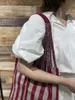 【Check Burgundy/チェック バーガンディ】 美しいバーガンディとライトグレー。 カジュアルになり過ぎず、品のある印象を与えます。 メキシコの山岳民族が伝統的な織物技法を使って織るオールハンドメイドのハンモックバッグ。 ハンモックを織る技法を使っているので、ハンモックバッグと呼ばれています。 ポイントとなる美しいツイストストラップは、他ではなかなか見かけないフォルム。テキスタイルは日本でデザインされています。 現地織り手民族の経済的支援も備えた、サスティナブルでヴィーガンなバッグです。 メキシコの太陽の下、庭先でおもいおもいに機織りをする女性たち。 丹念に手織りされた布は両端を縫い合わせられ、バッグのかたちになります。 そしてそのバッグは メキシコから約 10,000km 以上離れた日本まで旅をします。 遥か遠い国の太陽の下で織られたこのバッグが、 あなたの毎日に ささやかな彩りを添えることを願っています。 ・この製品はハンドメイドのため、若干のサイズの個体差などが見られる場合があります。製品上の特性としてご理解いただけましたら幸いです。 ・ブランドタグはWhite・Blackが混在しております。ご希望があればどうぞご連絡ください。 ・ご自宅の洗濯機で洗濯する際は、単独でネットを使用されることをお勧めいたします。