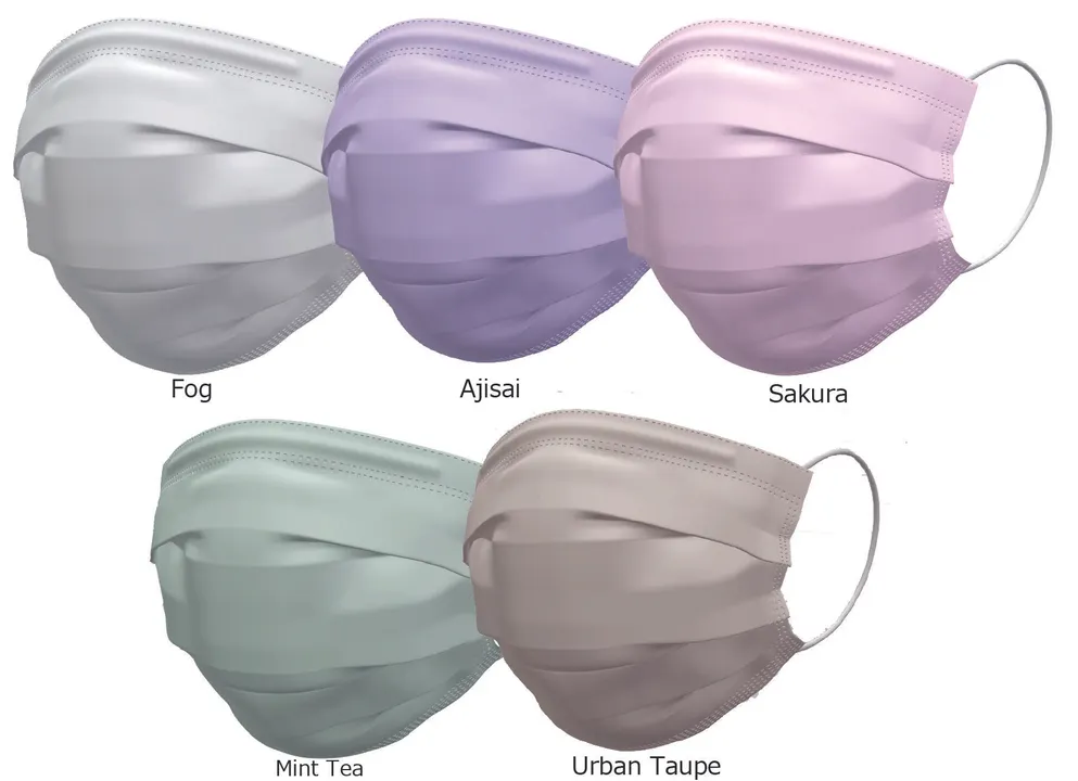 しっかりとした 3 層構造。99.9% ウィルスカット可能なフィルターを使用 カラーと質感にこだわった多色展開 すべて個包装で、Made in Japan