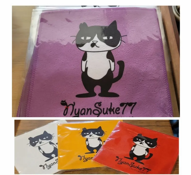 猫好きさん必見のブランドNyanSuke77 ハチのハンドタオルです マイクロファイバー生地でさわり後心地も良く、吸水性も抜群です。 200㎜×200㎜サイズです。 ※JANコードは『ハンドタオル』の1種類です。