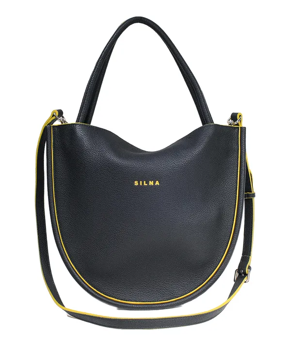 SB1104 ソフトシボレザー/Eggバッグ 軽量、2way BAG BLACK,NAVY,OFF WHTE 3色展開 SIZE:36×28×3 マグネットの上下で口元が留まるデザイン。 前面のSILNAロゴがカラーアクセントになっています。 携帯、財布、鍵など必要最低限の荷物の時のお供に!! スマート&スタイリッシュに!! ブラック×イエローロゴ 裏地/イエロー ネイビー×ピンクロゴ 裏地/ピンク オフ×オレンジ 裏地/オレンジ 内側/オープンポケットカ所 調整可能ショルダーストラップ付き。