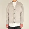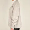 1960年代のヴィンテージカーディガンをベースにオーバーサイズにモダナイズ。 ニットにしか表現できない独特の落ち感を維持して美しいシルエットをキープできるように設計し、2色の糸を編み上げることで生じる表面に色の奥行きという違和感を持たせました。 厚みのある贅沢なダブルジャッカード 襟部分のリブは5Gローゲージに切り替え シャツ、ブラウスなどに重ねて頂いても、シンプルにカットソーでも。 カシミヤ100% 重量460g以上~