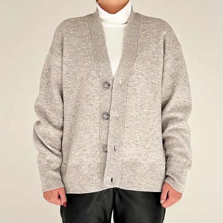 【Calin】ダブルジャッカード オーバーサイズカーディガン L.Grey #/S