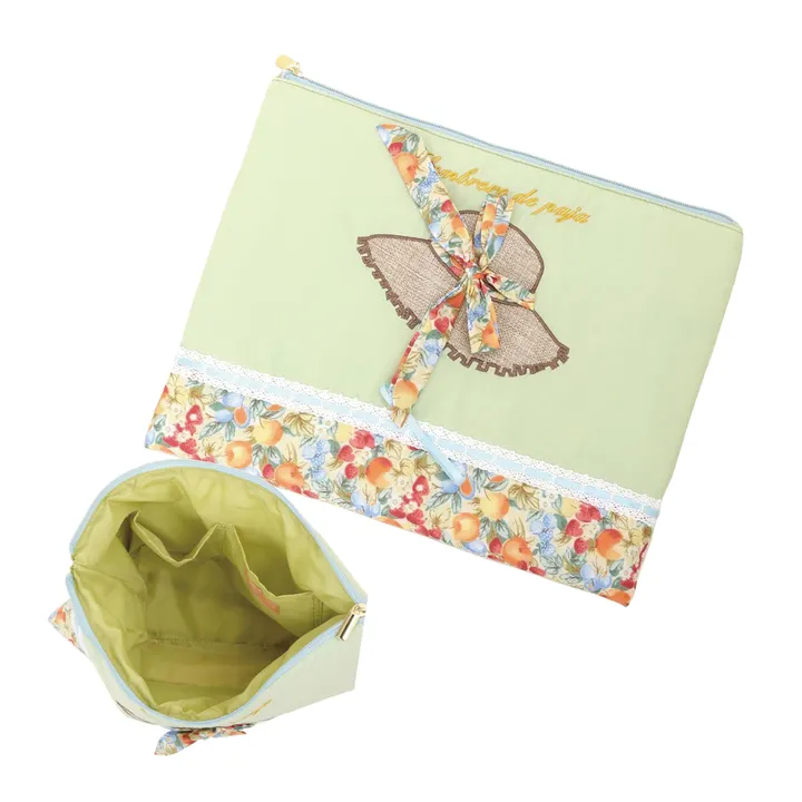 タブレットやラップトップケースとして最適なBigサイズのポーチ。 クッション性のある肉厚な素材感です。 クラッチバッグとしてもピッタリなので旅先のディナーやちょっとしたおでかけにもぜひ連れて行って! 内側2か所オープンポケット付き。 ディテールにこだわったアップリケが印象的な "リゾートアップリケシリーズ" 。 リボンを結べるストローハット、海がうつりこんだサングラス、ドットとフリルのアンダーウェア、とカラーによってアップリケが異なります。 ※正規の電子機器ケースではございませんので自己判断の上ご使用ください。