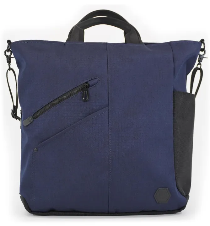 本体生地は同一色の糸で織ることによってナチュラルな表面質感に加え、ツイルを格子状に織り込んだ特殊なハイブリッド素材を採用。着脱可能なショルダーベルトが付いた2WAYトートバッグ。