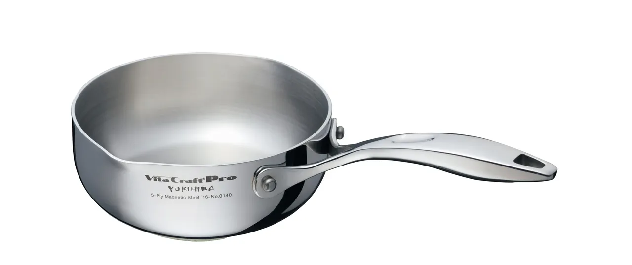 全面5層構造。さっと火を通したり、小回りのきくお鍋です。注ぎ口が2箇所について使いやすく、便利です。
