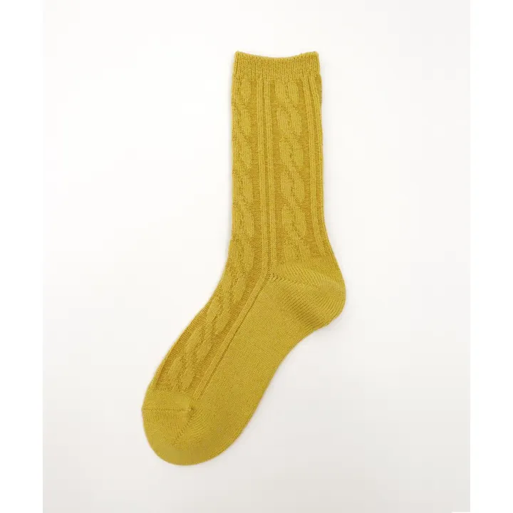 【1Pソックス】ウール混 ケーブル編みクルーソックス【レディース】 37 マスタード Sサイズ:22.5-24.5cm