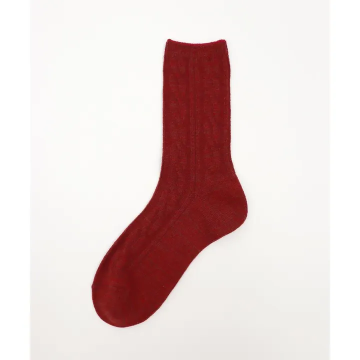 【1Pソックス】ウール混 ケーブル編みクルーソックス【レディース】 67 ワイン Sサイズ:22.5-24.5cm