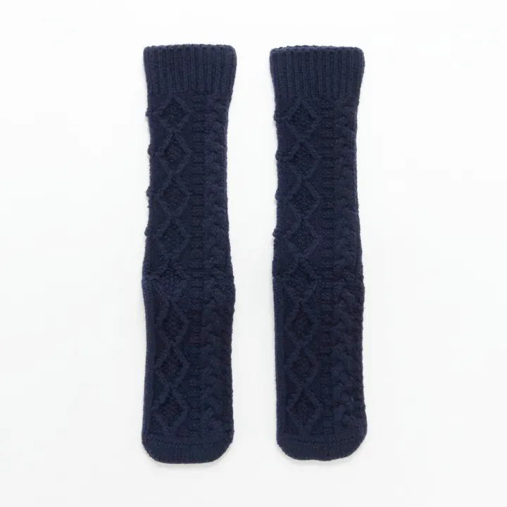 南フランスで育ったメリノ種の羊から取れるウール、フレンチメリノを使用したアランニットのような靴下です。他の国や地域のウールに比べてフカフカでモチモチとした弾力性が特徴です。立体的なケーブル柄やプリプリッとした質感は素材のおかげで表現できる独特な雰囲気です。 98%WOOL,5%NYLON,2%POLYURETHANE 日本製