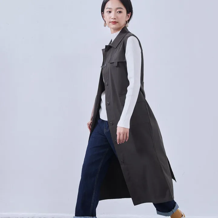季節を問わずレイヤードスタイルを楽しめるミリタリーベストのロングバージョンです。ノースリーブワンピースとしても、インナーを合わせてボタンを開けてベストとして着用してもロングシーズンご着用いただけます。 機能性とスタイルを融合させたミリタリーテイストのデザインが都市のスタイルと融合し、モダンでアーバンな雰囲気を醸し出します。シンプルデザインで、アウトドアアクティビティからカジュアルな日常まで幅広いシーンで活躍します。 1枚羽織るだけで一気に今っぽくなる万能アイテム。 ベルト付きのデザインはウエストラインを引き締め、メリハリのあるシルエットを演出します。ビジネスカジュアルな雰囲気を求める場合には、シャツと組み合わせて、程よいカジュアル感を出すことができます。 #ベスト#ロングベスト#羽織り#アウター#ベストワンピース#ミリタリーワンピース#ミリタリー#ワークマン#ワークマンベスト#ベルト#フラップポケット#ベストワンピース#ノースリーブ#ワンピース#ロング
