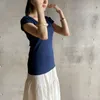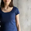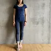 【日本製】丸胴コットンフライス_ラウンドネックキャップスリーブ ネイビー2-3サイズ