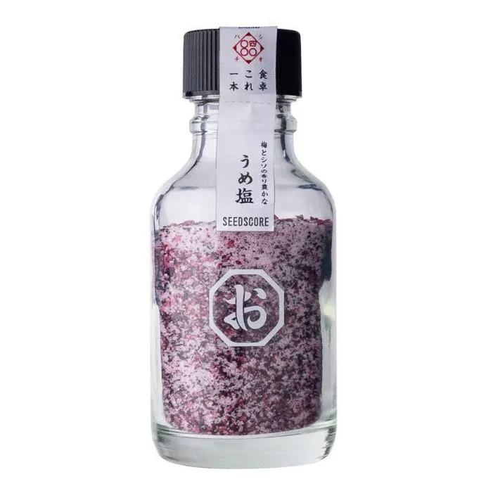 紀州産の梅、梅酢とシソを使っています。梅の酸っぱさとシソの香りが梅の美味しさを引き出しています。おにぎりやお茶漬け、焼き鳥の付け塩。鶏のささ身との相性も良いです。ドレッシング作りに。