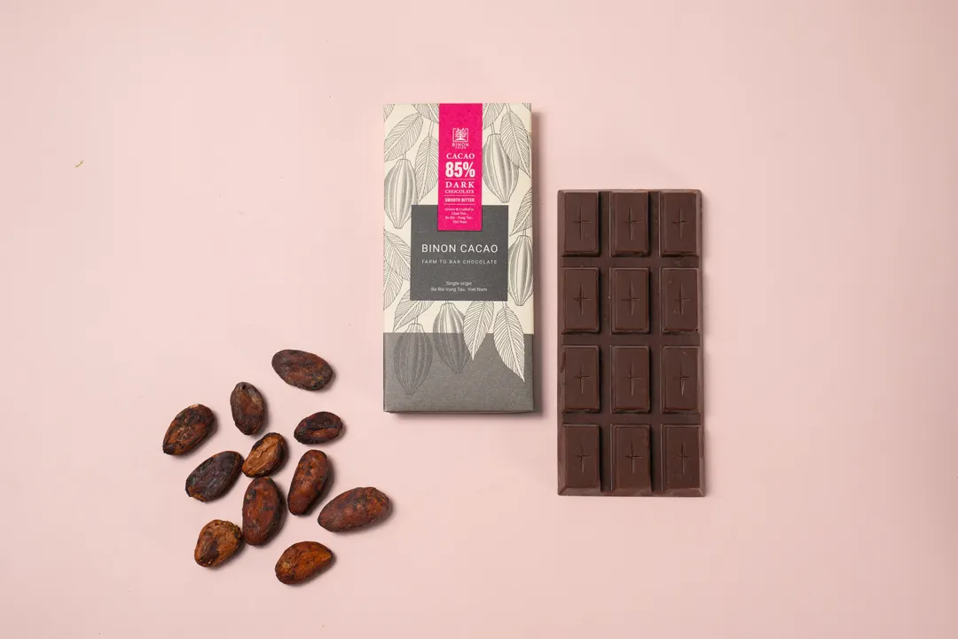 「商品について」 全6種類のBINONのタブレットチョコレート。 ベトナムの東南部、バリアブンタウの農園で収穫したカカオポッド(カカオの果実)から作ったチョコレートです。丁寧な発酵作業によって育まれた芳香でフルーティーなフレーバーが特徴的です。 FLAVOR ● アプリコット ● 干しぶどう ● 黒糖 ● キャラメル ・85%ダーク カカオ濃度85%は、奥深く力強いカカオの苦みと南国フルーツの酸味を感じられます。 ベトナムのカカオの特徴そのものの風味を強く味わえ、日本酒やワインなどアルコールにも相性の良い大人のチョコレートです。 【成分】カカオマス・きび砂糖・カカオバター 【賞味期限】製造日より1年 「商品重量」40g ※タブレットのサイズ大(55g)もあります。 【納期】 在庫がある場合はご注文後、1週間以内に発送いたします。 在庫がない場合は受注生産となりご注文後、目安として1〜2ヶ月以内に発送いたします。 【その他】 ※涼しい場所で保存してください。直射日光を避け保管ください。