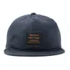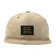 タグ風ワッペンがフロントに付いたナイロン素材のツバの短いアンパイアキャップ。最高撥水等級の 5 級、紫外線カット率最高値の 99.9%、UPF 最高値の50+を取得した生地を使用しています。(※日本繊維検査協会調べ)