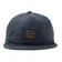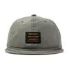 タグ風ワッペンがフロントに付いたナイロン素材のツバの短いアンパイアキャップ。最高撥水等級の 5 級、紫外線カット率最高値の 99.9%、UPF 最高値の50+を取得した生地を使用しています。(※日本繊維検査協会調べ)