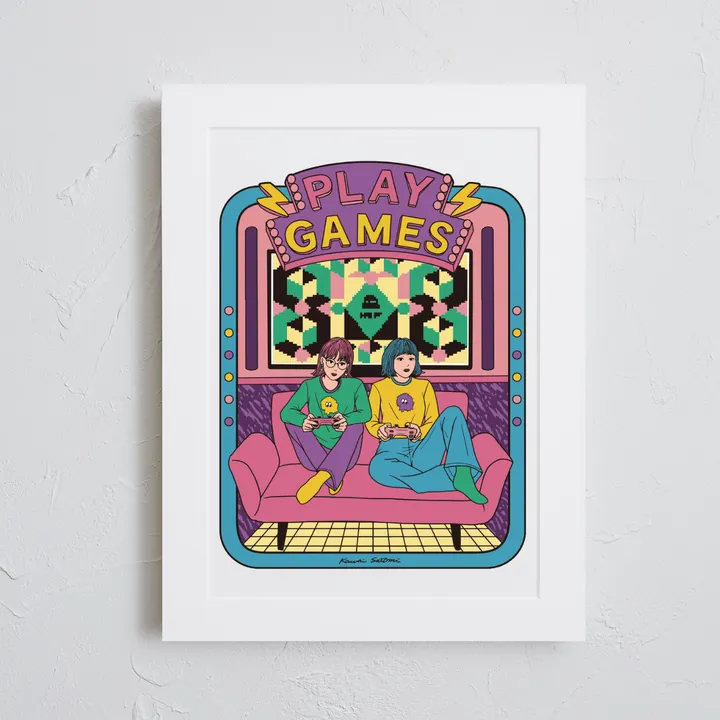 アーティスト -PROFILE- Satomi Kawai(サトミ カワイ) イラストレーター&グラフィックデザイナー 女子美術大学デザイン学科卒業 デザイン会社での勤務経て2015年フリーランスに。 ちょっとシュールで小洒落たイラストを描いています。 【作品について】 TVゲームをする時の楽しさを表しました。 作品名:PLAY GAMES 手法:イラスト、デジタル ペーパー:高品質半光沢紙 マットカラー:白 マット*:DXホワイト芯 100%バージンパルプ/PH7・中性紙(2mm厚) ※全てのアートにマットがつきます フレームカラー:黒、白、無垢(3種類から選択) ※マット付のため通常とはフレームサイズが異なる規格となります。 【マット*とは?】 アートポスターの周りに挟んだ厚紙の事。 マットを使わない時に比べ余白により広がりが生まれ、作品の新たな一面を引き出せ作品の見栄えがグッと良くなります。また、額縁のガラス面と作品が直接触れたままにしておくと、くっついて作品を傷つけることがあります。マットを使用することでガラスと作品の間に空間ができ、作品を保護することができます。ブランドコンセプトにより全てのアートにマットがつきます。 ー ファッションのようにアートを ー 私達が掲げるコンセプトです! 毎日着替えるファッションの様に、アートも気軽に飾り変えて欲しい... 一旦飾り終えたアートにも光を当ててほしい... ポスター単体、またはリピートで中身だけのポスターを購入された方に"専用のハンガー"をセットでお届け。 「今までに無い!新しいアートの飾り方を提案」 飾る事がなくなった前のアートをハンガーにかけて洋服と一緒にかけてもらう。 その日の気分や、モチベーションですぐに取り換えられる様に。 もちろん、魅せる収納としても今までにないおすすめの飾り方です。