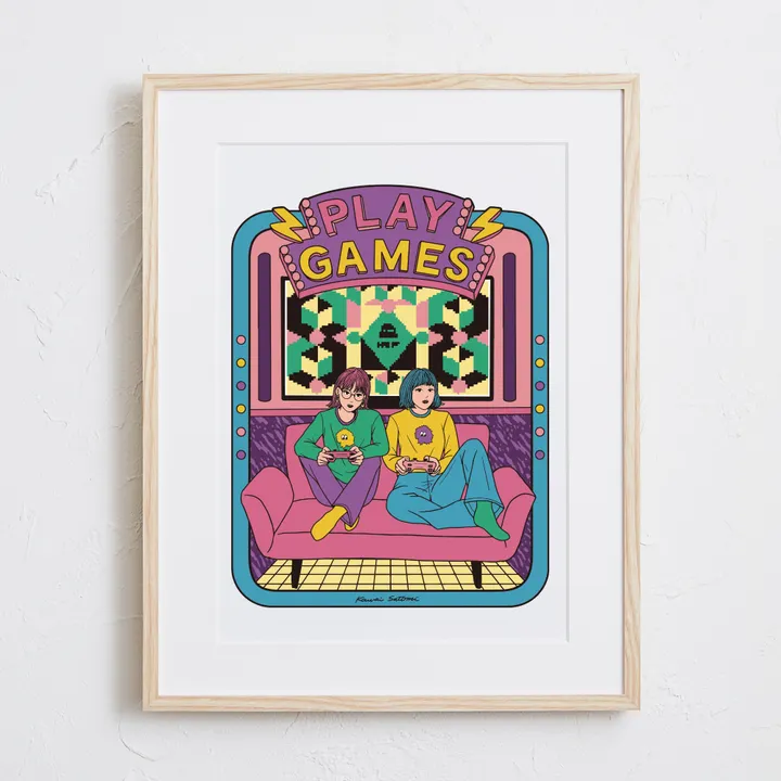 アーティスト -PROFILE- Satomi Kawai(サトミ カワイ) イラストレーター&グラフィックデザイナー 女子美術大学デザイン学科卒業 デザイン会社での勤務経て2015年フリーランスに。 ちょっとシュールで小洒落たイラストを描いています。 【作品について】 TVゲームをする時の楽しさを表しました。 作品名:PLAY GAMES 手法:イラスト、デジタル ペーパー:高品質半光沢紙 マットカラー:白 マット*:DXホワイト芯 100%バージンパルプ/PH7・中性紙(2mm厚) ※全てのアートにマットがつきます フレームカラー:黒、白、無垢(3種類から選択) ※マット付のため通常とはフレームサイズが異なる規格となります。 【マット*とは?】 アートポスターの周りに挟んだ厚紙の事。 マットを使わない時に比べ余白により広がりが生まれ、作品の新たな一面を引き出せ作品の見栄えがグッと良くなります。また、額縁のガラス面と作品が直接触れたままにしておくと、くっついて作品を傷つけることがあります。マットを使用することでガラスと作品の間に空間ができ、作品を保護することができます。ブランドコンセプトにより全てのアートにマットがつきます。 ー ファッションのようにアートを ー 私達が掲げるコンセプトです! 毎日着替えるファッションの様に、アートも気軽に飾り変えて欲しい... 一旦飾り終えたアートにも光を当ててほしい... ポスター単体、またはリピートで中身だけのポスターを購入された方に"専用のハンガー"をセットでお届け。 「今までに無い!新しいアートの飾り方を提案」 飾る事がなくなった前のアートをハンガーにかけて洋服と一緒にかけてもらう。 その日の気分や、モチベーションですぐに取り換えられる様に。 もちろん、魅せる収納としても今までにないおすすめの飾り方です。