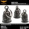 アメリカ製ガーディアンベル社製ガーディアンベルです。 MADE IN USA アメリカ製 交通安全 魔除け 御守り ガーディアンベル アメリカのライダーの間には、事故や、転倒の原因は「道路にひそむ悪魔」によるいたずらだという伝説があります。悪魔は走る者に悪戯やトラブルを運んできます。このベルは美しい音色で悪魔たちを追い払うと言われ愛されています。そんな悪魔のいたずらを防ぎ、御守りとなるのが、守護者のベルという意味を持つガーディアンベル。 日本でも鈴の音(ね)は神道では魔除けの音と言われています。ピューター製の鈴でいい音色でガーディアンベルはデザインも様々あります。 またガーディアンベルにまつわる伝説として、プレゼントとして送られたベルの効果は、自分で手に入れたものの2倍になると言われています。 それゆえに彼氏・彼女・友達・家族へのプレゼントとしての人気も非常に高まっています。 シルバーアクセサリーのようにおしゃれに装着できて素敵な音色を奏でるガーディアンベル。 バイカー以外にも自転車や旅・交通安全のお守りとしてお使いいただけます。 カバン・ランドセル・キーホルダー・ペットの首輪等に付けてお使いください!! ※タイラップ等でバイクのフレームにも簡単に取り付けできます。 アメリカンモデルだけではなく、旧車ファン、レプリカライダーまで、さらにバイクだけでなく、自転車や車にもピッタリな御守りとなっています。 アクセサリーとしても人気で、アイディア次第で車体だけでなく、キーホルダーや鞄など、どこにでも付けておしゃれに楽しめます。
