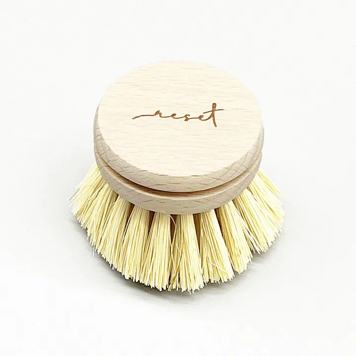 エコにもつながる、ナチュラルでおしゃれなキッチンブラシ交換用ヘッド オリジナルブランド「the reset」にて、お鍋や野菜を綺麗に洗い上げる、機能性にもデザイン性にも長けたキッチンブラシの交換用ヘッドが新登場です。 ヘッドを付け替える際は、少し力を込めて、回しながら押し入れるとはめ込みやすいです。ケガなどにご注意いただきお取替えください。 また「the reset」キッチンブラシ以外にも、当店で取り扱いの中だとレデッカーや、イリスハントバークのキッチンブラシにもご利用いただけます。 ※こちらはキッチンブラシの交換用ヘッドのみの販売となります。 硬すぎず柔らかさもあるサイザル麻のブラシは、フライパンや食器、野菜の泥や砂を落とすのにもお使いいただけます。スポンジでは躊躇してしまうカレーやケチャップソースの付いたお鍋も、染まらずすっきり綺麗に洗浄可能。 さらにシンクやキッチン以外のお掃除にも使えて、一つあるだけでも大活躍します♪ 木材は北欧で人気のあるブナの木を採用、ブラシの毛は柔軟性と吸水性が高く油汚れに強いサイザル麻で作られたプラスチックフリーのキッチンブラシです。 単なる台所道具としてではなく、環境に配慮されたものは使っていてなんだか気持ちがいいものになりますよ。 手に馴染みやすく心地よい木の感触は、長く愛用していたくなるブラシになること間違いなし。