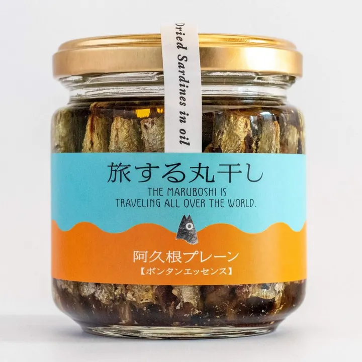 老舗の干物屋がたくさん残っている全国でも珍しい町、鹿児島県阿久根市。 この港町で漁師たちが朝方4時から6時に獲ってくる「ウルメイワシ」は、おなかの中にエサが残っていないので苦みが少なく、食べやすい干物になります。 お酒のアテのイメージが強い丸干しですが、時代の流れと共にライフスタイルも変わり、今では食卓で丸干しを見ることは随分なくなりました。 それでも「丸干しの良さを守りたい」と、朝どれの美味しい丸干しを世界の国々の味をイメージしたオイルに漬けました。 南イタリア、プロヴァンス、マドラス、阿久根…まるで日本の丸干しが世界をわたり歩いているような風味が丸干しの旨味と共に口の中に広がります。 創業昭和14年の下園薩男商店が提案する干物の新しい形です。 製造は手作業。じっくりと干され旨みが凝縮した丸干しは、より食べやすく頭としっぽを切り、一尾一尾製造スタッフが丁寧に瓶の中に詰めていきます。少しでも力の加減を間違えるとほろりと崩れてしまう丸干しを傷つけることなく、隙間なく瓶に整然と詰めていくのは一朝一夕でできることではありません。美味しい丸干しをより多くの人に知って食べてもらい、手に取ってくれるお客様の豊かな生活の一つに加われたら。そんな想いと共に丁寧に一尾ずつ詰めています。 ~阿久根プレーン~ ボンタンは鹿児島県阿久根市の特産品で、グレープフルーツのような柑橘で、直径20cmにもなる大きな果物です。阿久根プレーンは、鹿児島県阿久根産のボンタンオイルがほのかに香り、朝どれウルメイワシの丸干しの旨味をシンプルに味わえるプレーンタイプです。 和食との相性がよく、日本酒や焼酎が進みます。 時間を問わず、メインにも軽食にもおつまみにも。 風味豊かなオイルは、オイルパスタやドレッシング、ソースなどに使っても美味しく召し上がれます。 ※写真は盛り付けイメージです。丸干し以外の食材は販売物に含まれません。 ~活用レシピ~ ●丸干しと梅の肴 スライスした大根(またはカブ)に大葉を挟み、丸干しと梅干の果肉をのせて、オイルをかけて完成です。日本酒や焼酎と一緒にどうぞ。 ●丸干しの梅茶漬け ご飯に大葉をちらし、丸干し、梅肉をのせ温かい日本茶をかけます。お好みでゴマや醤油をかけてお好みの味に。しっとりとした朝食や夜食におすすめです。 ●丸干しのバーニャカウダ 旅する丸干しのオイル大さじ1とマヨネーズ大さじ1を混ぜ、アスパラガスやパプリカ等、お好みの野菜をつけてお召し上がりください。市販のバーニャカウダソースと丸干しをフードプロセッサーにかけても美味しいソースが完成します。