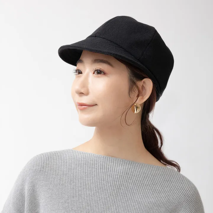 キャップ┃上品な綾織りのブリムキャップ BK(ブラック)