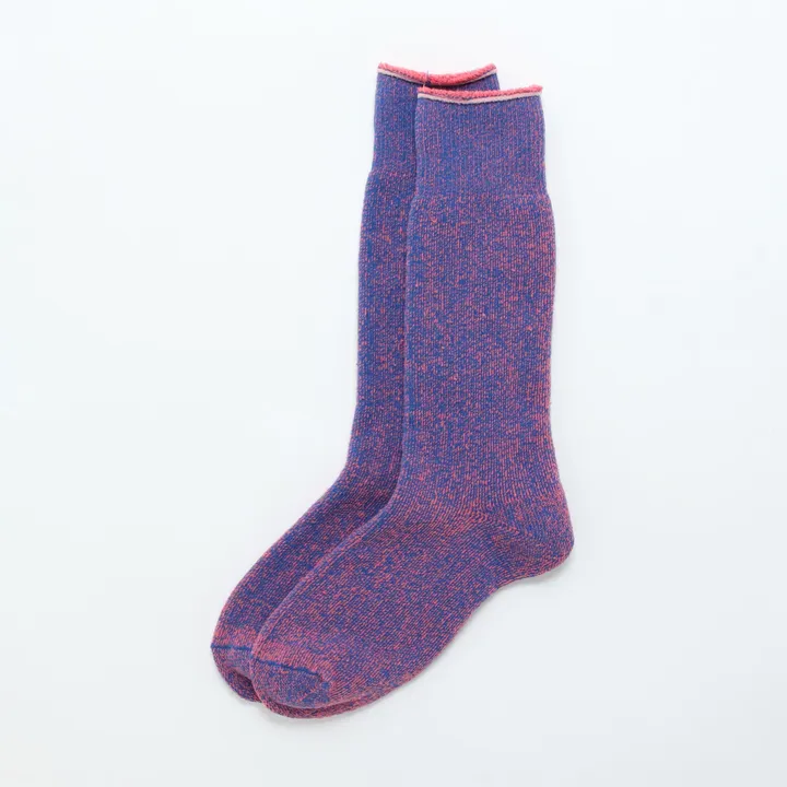 エコというものが取り組みからブームとなってしまった現代、 何が正しいのかを見失いがちになります。 地球にやさしく、お洒落を楽しむ。 足元から見直そうということで、リサイクルコットンを使用したシリーズを作りました。 廃棄される衣料や生産背景に残ってしまった糸や生地を色ごとに集めて、 もう一度ワタにし、新たな糸へ蘇らせています。 その際に一切の水を使用することなく、二酸化炭素の排出も限りなく少ない。