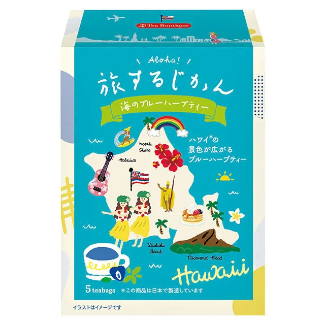 ●ノンカフェイン 世界各国をイメージしたお茶の旅するじかんシリーズ。世界中を旅する気分でティータイムを楽しめます。美しい海が広がるハワイの大地の力強いエネルギーをイメージしたブルーのハーブティー。ハワイの固有植物ママキをブレンド。 【Tea Boutique】(ティーブティック)ティーブティックは、19世紀の終わりに世界の紅茶の集積地といわれるドイツのハンブルクで誕生しました。品質の良 い紅茶をコンセプトに、卓越したティーブレンダーと世界最高のフレーバー技術、ノウハウを駆使して作られたお茶は世界各国で高い評価と信頼を得ています。 ストレートティーやフレーバーティー、緑茶など様々な商品をご用意していますので、お気に入りを見つけてみてはいかがでしょうか。
