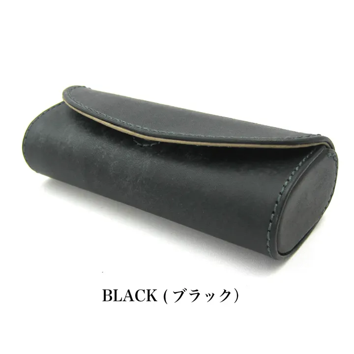 メガネケース ハードタイプ アンティーク仕上げ アンティーク仕上げ 本革 オイル バフ イタリア製 バケッタレザー BLACK