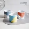 偶然と必然が重なって生まれたマーブルパターン。cosmosは一皿に小宇宙が広がるような幻想的なデザインの器です。 白がベースにあることで食卓を明るくし、料理も映えるようなシンプルな色デザインのシリーズです。 右手で持って飲んだ時に、相手側に絵柄デザインが向くように作りました。
