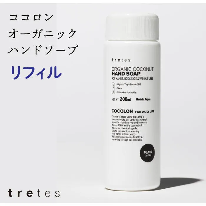 ココナッツオイルが元来有する高い洗浄力、保湿力をシンプルに活かした、洗うことに徹したハンドソープ。 合成添加物を一切使用していないので、敏感肌や、化学物質過敏症の方にもおすすめです。オールマイティタイプ。手洗いだけでなく、全身洗い・洗顔・ 食器洗いなどにもご活用いただけます。キッチン、浴室、洗面所等、自宅のあらゆるシーンに最高の安全性をお届けします。 【内容量】 200ml 【原材料】 水、ヤシ油、水酸化K 【JANコード】 4518568067817