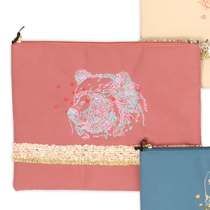 鮮やかな刺繍で描かれた動物が愛らしいシリーズ。 かわいいだけではなく、機能性も兼ね備えたアイテム達は、ワンランク上の旅を嗜む女性にぴったりです! 大きめサイズのポーチはクラッチとして持ったり、タブレットやラップトップケースとして最適です。 ※正規の電子機器ケースではございませんので自己判断の上ご使用ください。