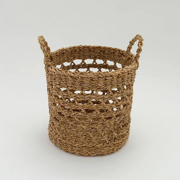 素朴な風合いが魅力的なシーグラスのバスケット。 職人によってひとつひとつ丁寧にハンドメイドで編まれています。 持ち手が付いているので持ち運びしやすく、鉢カバーとしても使っていただけます。 インテリアとしてもお部屋の雰囲気を上げてくれる一点です。 SEAGRASS(シーグラス)は日本のイグサに似た海草・天然水草です。 ひとつひとつ職人たちによるハンドメイドで生産しています。 軽量でありながら強度があるため、日常的に使われるバッグや雑貨などに適しています。 独特な風合いがあり、ナチュラルな雰囲気を出すことができます。 長く使っていくうちに味が出てくるため、使い込むほどに愛着が湧いてくるという特徴があります。 ナチュラルで素朴な風合いを大事にするため、無垢に近い状態で生産しています。 そのため所々に 黒い染みのような部分があったり、節や色むら・小さなひび割れやささくれ等があります。 また、天然素材を材料に生産しているため、収穫時期や天候状況により色・素材の太さなどが異なります。 職人が ひとつひとつ編んでいるため、多少のゆがみや形・サイズに若干違いがありますが、大量生産には無いそれぞれの表情をお楽しみください。 水に濡れた場合は素早く乾いた布で軽く叩くように拭き取り、風通しの良い場所で陰干ししてください。 濡れたまま保管するとカビが発生する原因となりますのでご注意ください。 【インテリア】【収納】【整理】【ガーデニング】【鉢カバー】【プラントカバー】【観葉植物】【まとめ】
