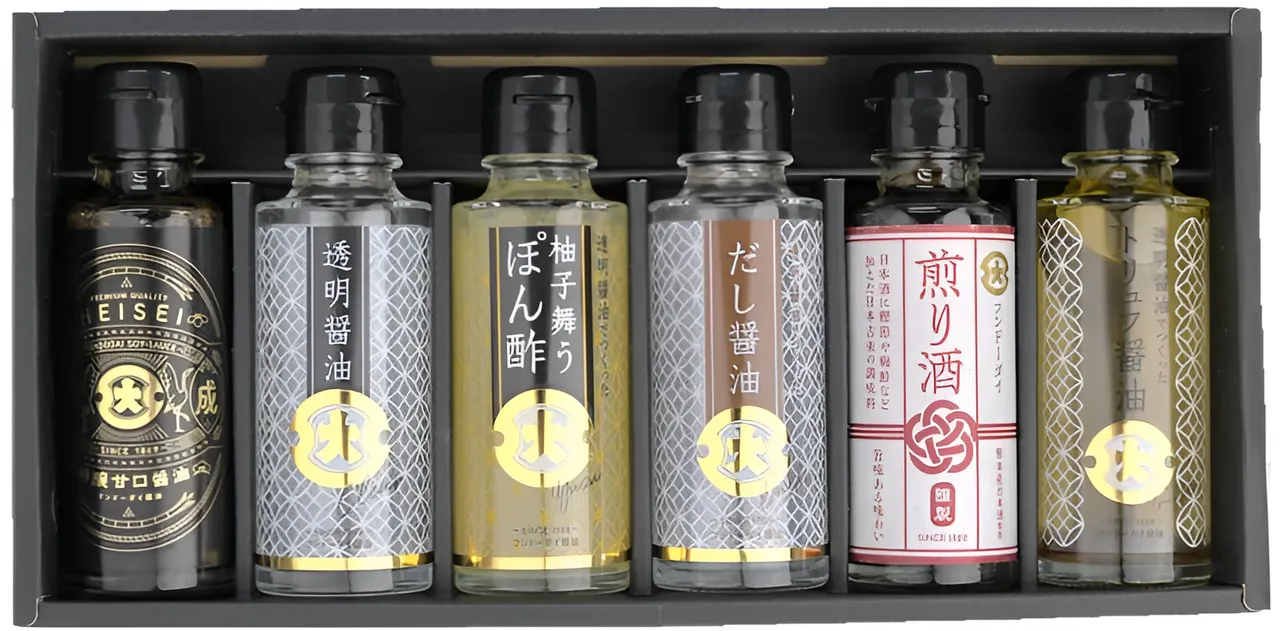 ★フンドーダイこだわりの商品6種類を詰め合わせギフトセット★ 「平成」、「透明醤油」、「透明?油でつくった柚子舞うぽ酢」、「透明醤油でつくっちゃう醤油」、「透明醤油でつくったトリュフ」 わさびオイル」の中から6種類を詰め合わせギフトにしました。 ▼ご注意ください▼ ・こちらは受注生産品です。ご注文を確認後にセットアップしますので、 発送までに7日(店舗休業日を除く)お時間をいただきます。 ・ご注文個数により発送までにお時間をいただく場合がございます。 ・包装や熨斗をご希望の際は、ご注文の際にメールにてご連絡ください。 ※包装はエコ包装(簡易包装)にて承ります ・手提げ袋同梱のサービスは行っておりませんのでご注意ください 。 ◆こだわりの贅沢6本セットA 平成100ml 透明醤油100ml 透明醤油でつくった柚子舞うぽん酢100ml 透明醤油でつくとき醤油100ml 煎り酒100ml 透明醤油でつくったトリュフ醤油100ml   <各1本> ◆こだわりの贅沢6本セットB 平成100ml 透明醤油100ml 透明醤油でつくった柚子舞うぽん酢100ml 煎り酒100ml 透明醤油でつくったトリュフ醤油100ml わさびオイル 45g   <各1本> Share