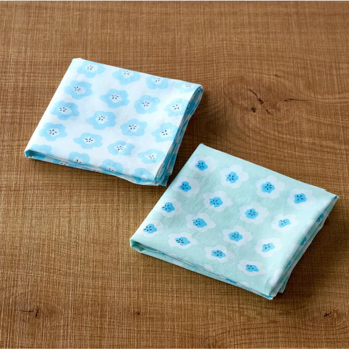 ネモフィラの咲く丘を描いた ブロックプリントのハンカチ GN(グリーン)