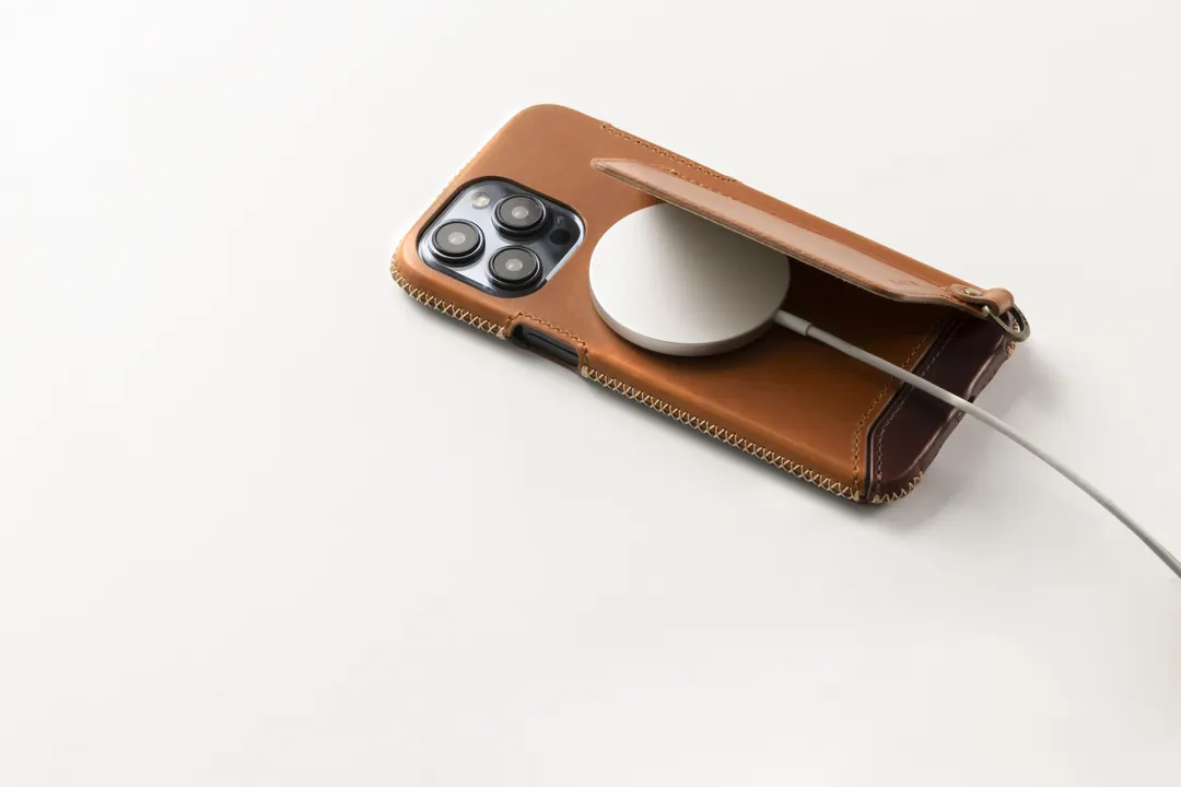 Genuine Leather multi-functional Case for iPhone 15シリーズ(ハンドストラップ付)iPhone 14対応 iPhone 15 Pro/Brown